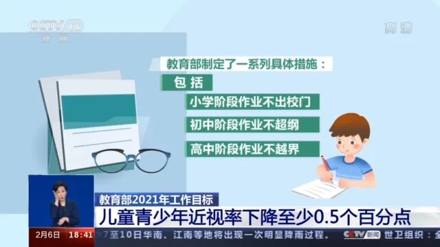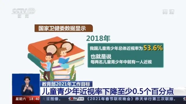 这两天,教育部发布了我国2021年教育工作的40项重点任务。其中明确提出,2021年,各地儿童青少年总体近视率要比2020年下降0.5或1个百分点以上。