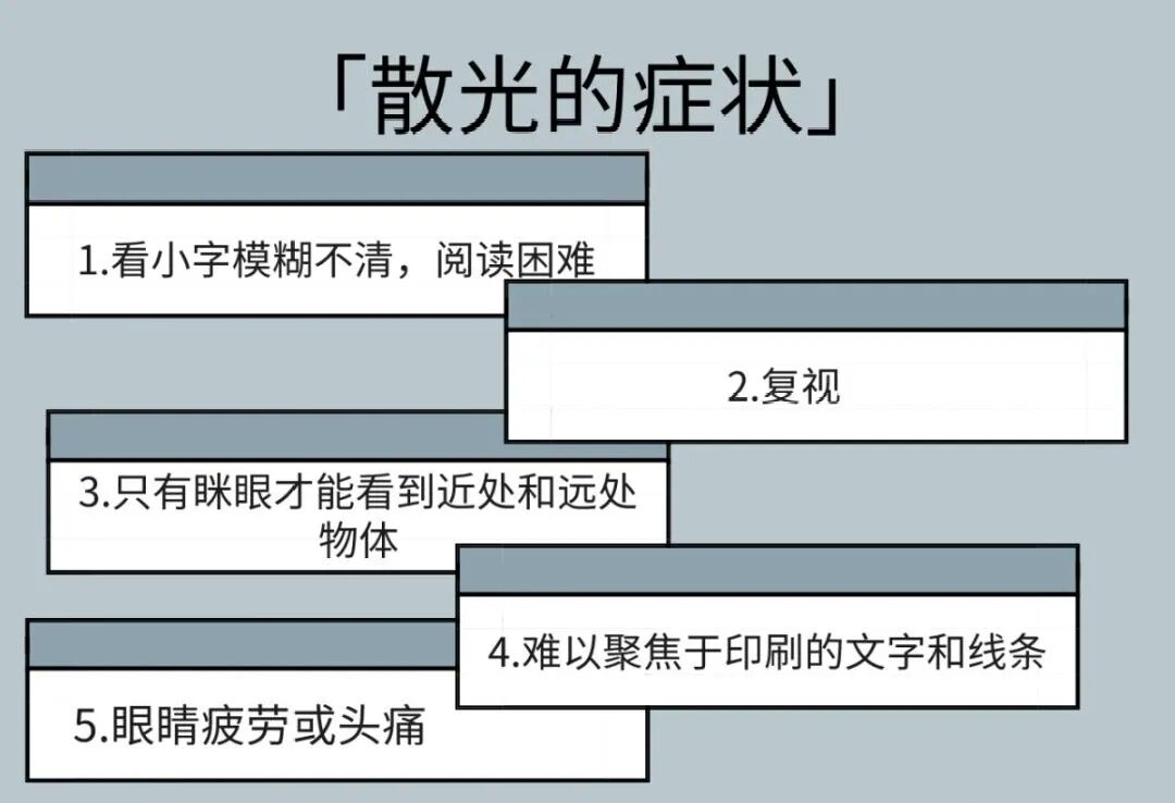 大家都知道,近视看近(<33cm)清晰、看远模糊,而散光无论远近视物都会出现模糊重叠的现象。